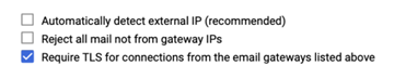 Note: If you have other IP addresses in the Inbound gateway and you don’t want to uncheck this option, you can leave it on. The impact is that is might interfere with whitelisting some emails.